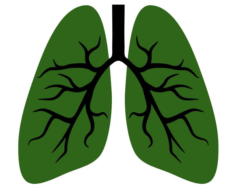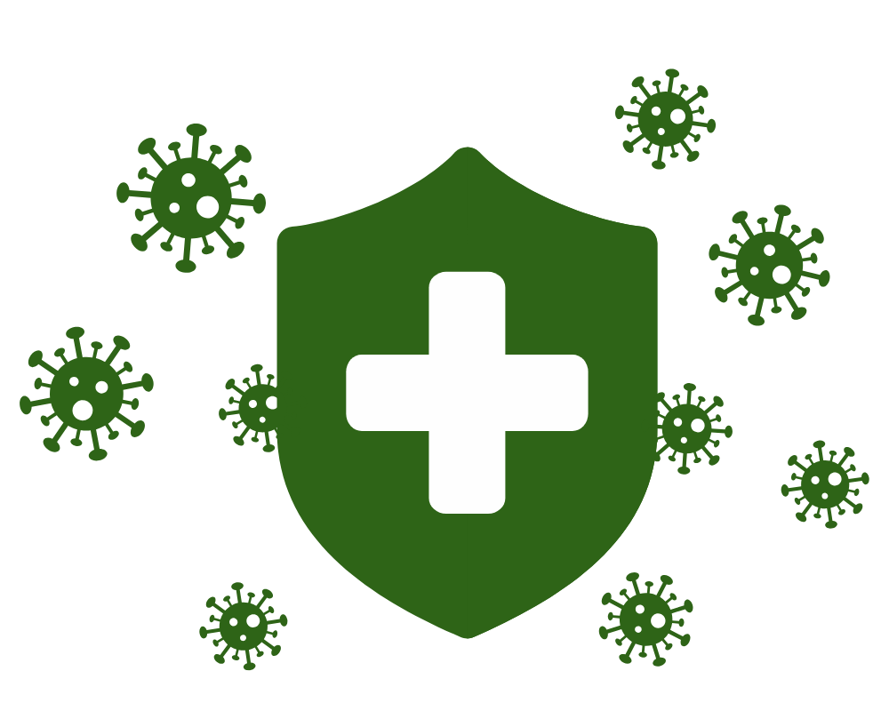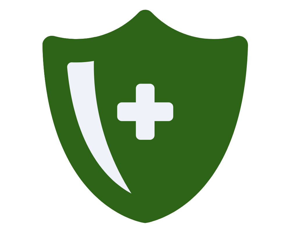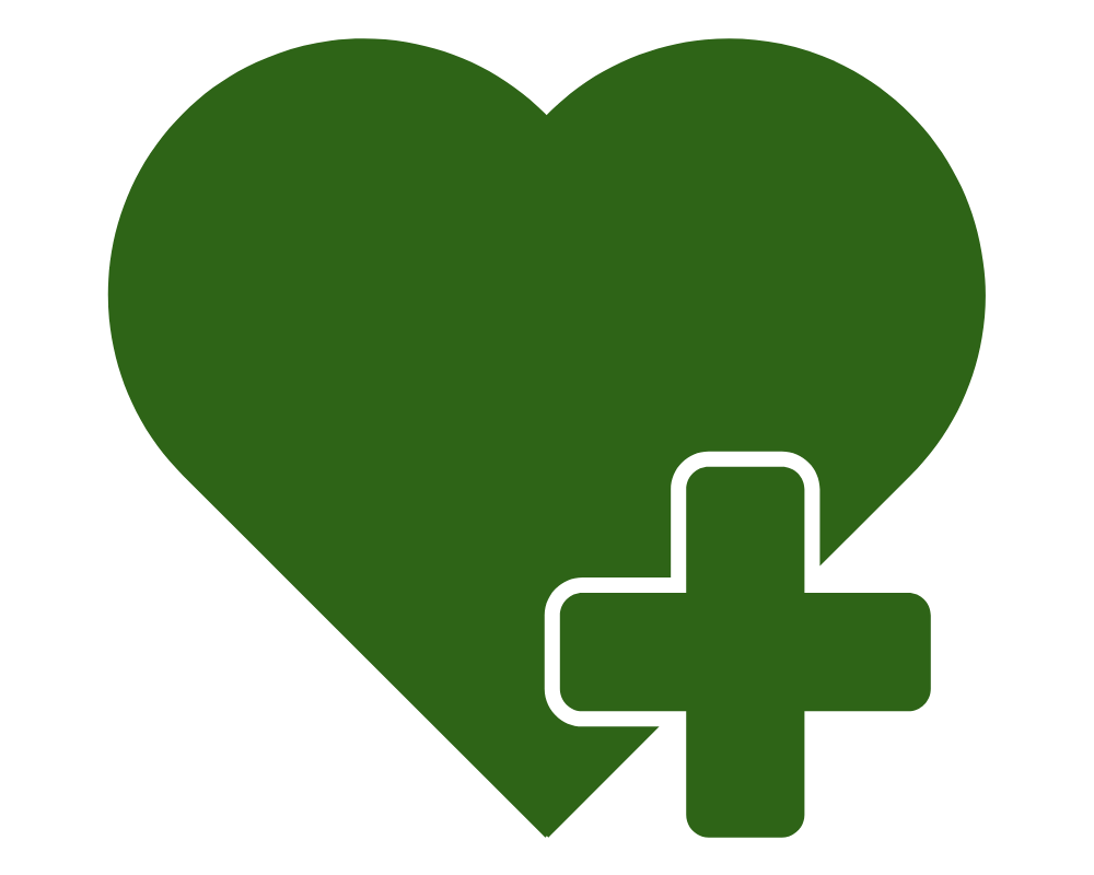 Green icon of a stomach with a heart containing a cross symbol on a white background